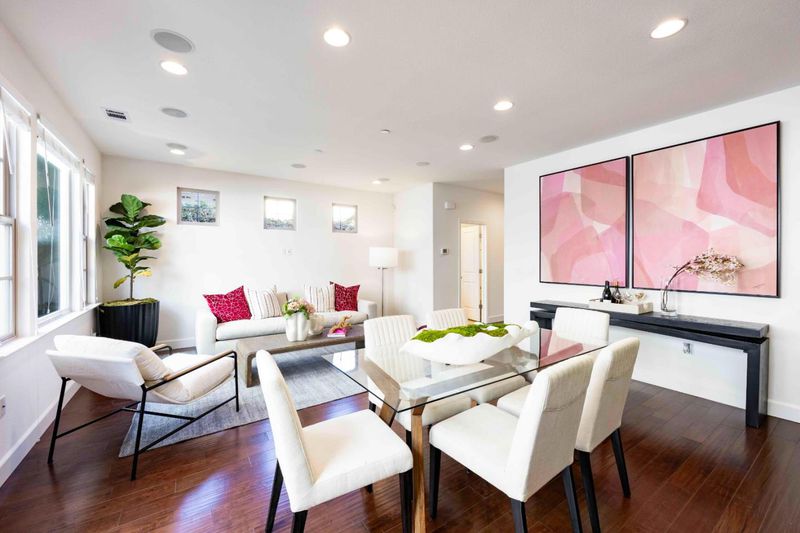 Perfectly positioned in the highly sought-after Allied Arts neighborhood, just moments from both downtown Menlo Park and downtown Palo Alto, this inviting home offers an exceptional blend of comfort and convenience. Spanning more than 1,800 SF across two levels, the home features richly hued engineered hardwood floors, soaring ceilings with integrated speakers on the main level, and a thoughtfully designed floorplan. Expansive living and dining areas flow seamlessly into a chef's kitchen with appliances from GE Profile and Kenmore Elite, while four bedrooms include a spacious primary suite. A back patio provides a serene space for outdoor enjoyment, complemented by air conditioning, a tankless water heater, and an attached 2-car garage with EV charging. All of this is just moments from premier shopping and dining, beautiful parks, key commute routes, and top-ranked schools including Oak Knoll Elementary, Hillview Middle, and Menlo-Atherton High (buyer to verify eligibility).