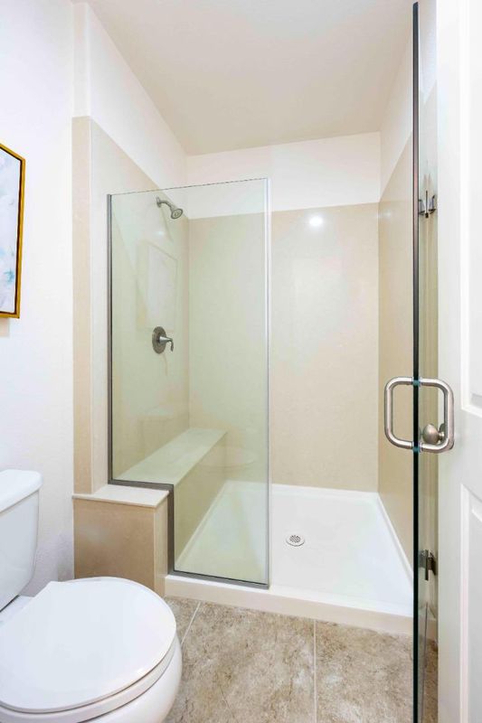Double Sinks, Half on Ground Floor, Primary - Stall Shower(s), Shower over Tub - 1, Split Bath, Tile