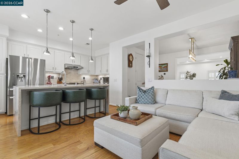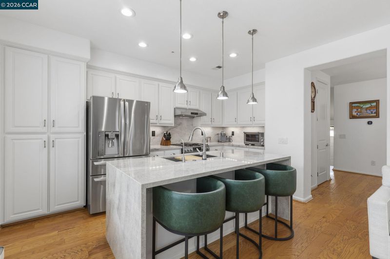 Beautifully upgraded townhome offering approx 2,112 sqft of thoughtfully designed living space. Attached 2-car garage & convenient guest parking on Brannigan St. add to the home’s everyday ease. The standout chef’s kitchen has been extensively renovated & features an oversized waterfall island wrapped in two adjacent Taj Mahal quartzite slabs w/seamless, continuous veining. A full-height backsplash crafted from a third matching slab creates a cohesive, designer finish. High-end upgrades include an LG smart gas range, LG 3-rack dishwasher, Hauslane SS hood, Aquasana reverse osmosis system, KRAUS workstation sink w/disposal & Delta touchless faucet. Refinished oak cabinetry is enhanced soft-close hinges, SS hardware, modern black outlets & cover plates & designer pendant lighting. Additional improvements include plantation shutters, refreshed baths w/refinished cabinetry & KOHLER fixtures, updated guest bath, reconfigured laundry & mud room, Ecobee therm, EV charger. Prime location close to K-12, 580/680, BART+