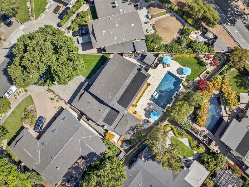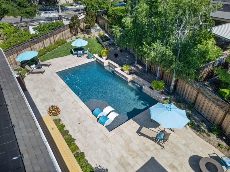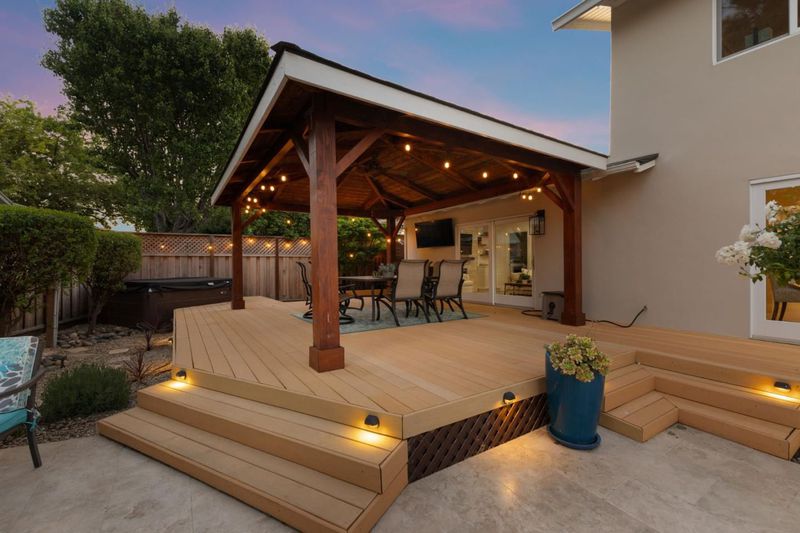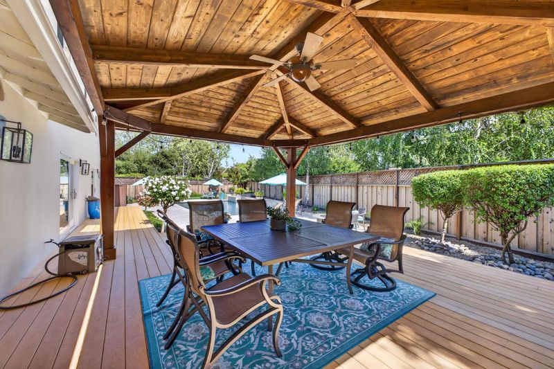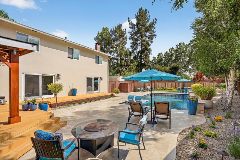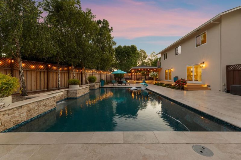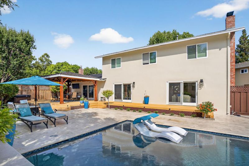Dont miss this Dry Creek beauty! The popular Del Monte model offers 5 bedrooms and 3 remodeled bathrooms, with 1 bedroom downstairs and 4 upstairs. Completely remodeled inside and out, this home is perfect for entertaining or gourmet cooking. The kitchen features a huge island with seating and storage, a Thermador package with 48" double oven range, expanded layout with easy access to the formal dining area, recessed and pendant lighting, pantry with pullouts, and abundant cabinetry and counter space. Separate living and family rooms with wood-burning and gas fireplaces. The resort-style backyard showcases a saltwater pool with stacked stone, water features, baja shelf, pebble finish, and glass tile. Travertine hardscape stays cool in summer, plus a covered deck for year-round enjoyment, planter boxes, freestanding jacuzzi, and grass area. Additional features include owned pool solar, engineered French oak flooring, vaulted family room ceiling, Chippandale designed balcony rails, fresh paint, upgraded electrical, and solid wood doors. This home has been perfectly prepared for the new owner., don't miss it!