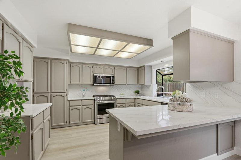 - Cooktop - Gas, Countertop - Quartz, Dishwasher, Garbage Disposal, Microwave, Oven Range - Electric, Pantry, Trash Compactor