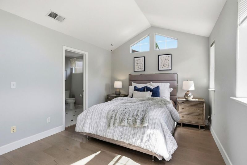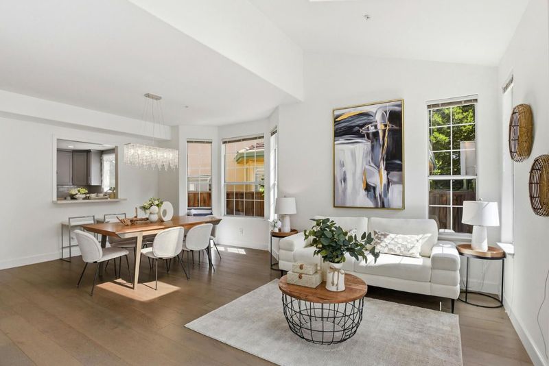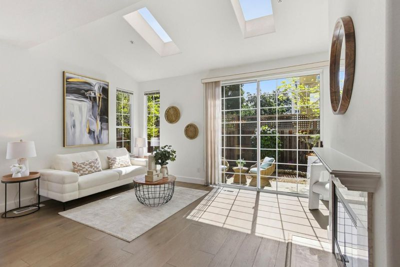 This two-story Palo Alto townhouse features 1,375 square feet of living space on a 1,176-square-foot lot, including two bedrooms and two and a half bathrooms. Quality interior details include hardwood flooring, high vaulted ceilings, and skylights that provide abundant natural light throughout the home. The open floor plan centers on a living room with a fireplace and provides direct access to a private fenced backyard. Notable amenities include an in-unit laundry area, an attached one-car garage, and additional guest parking. Residents also have access to a community swimming pool and well-maintained landscaped grounds. Located in a prime Silicon Valley position, this home offers a convenient commute to Stanford University and major technology campuses via Highways 101 and 280. The property is situated near downtown Palo Alto and Los Altos, and it benefits from the local school district including Juana Briones Elementary, Fletcher Middle, and Gunn High School.