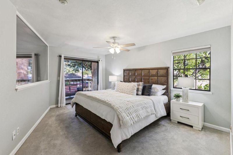 Welcome to 5319 Port Sailwood in the vibrant city of Newark. Well-maintained 3-bed, 2.5-bath home offers approx 1,647 sq ft of living space with a private patio area and pre-wired Spa connection. Home features a spacious family room with bamboo flooring, blinds, and modern surround fireplace. Kitchen includes Frigidaire S/S appliances, a large sink, tray ceiling with recessed lighting, and pendant lighting over the counter. Adjacent dining area includes a ceiling fan and access to a private tiled courtyard. Main level features a half bathroom with granite countertop, tile flooring, and a pocket door, plus a laundry closet with washer and dryer. Primary bedroom offers a ceiling fan, private balcony, and a bathroom with a tiled walk-in shower, double shower heads, and granite vanity. 2 additional bedrooms include ceiling fans, one offering a walk-in closet. The hall bathroom includes a granite vanity, tile flooring, and a shower over tub. Additional features include updated stair railings, storage under stairs, and fiber optic capability. Complex offers Pool, Conveniently located near Coyote Hills Regional Park, Silliman Activity Aquatic Center, and NewPark Mall, shopping, dining, and entertainment. Close proximity to major employers including Tesla, Meta, and Lucid Motors.