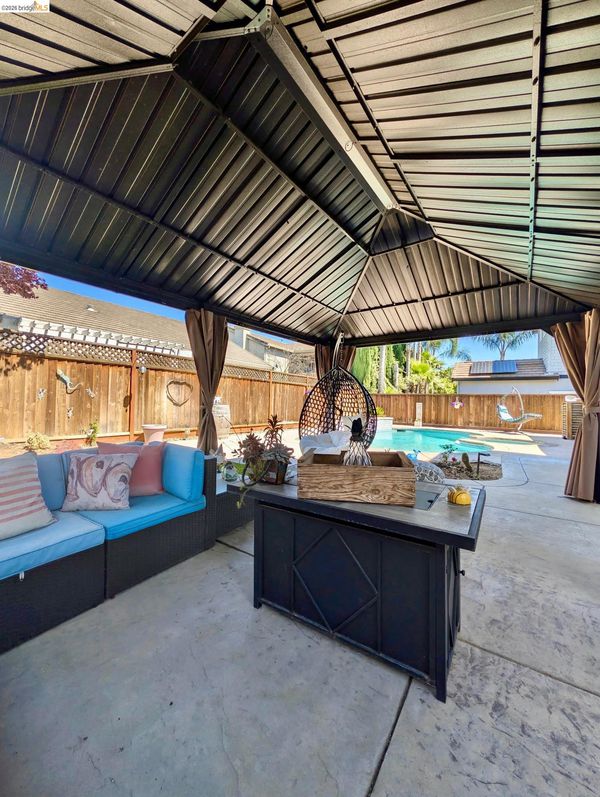 Welcome to this beautifully appointed home, perfectly designed for both everyday living and exceptional entertaining. The backyard is a true retreat, featuring a sparkling pool, charming gazebo, and plenty of space to host gatherings or simply relax in your own private oasis. Inside, the thoughtfully designed floor plan offers flexibility and comfort, including a desirable downstairs bedroom and full bathroom, ideal for guests or multi-generational living. Upstairs, you’ll find three additional bedrooms along with a dedicated office featuring built-in cabinetry, perfect for working from home or creating a quiet study space. Car enthusiasts and those needing extra storage will appreciate the rare 4-car garage, complete with an EV charger. Additional highlights include owned solar for energy efficiency and long-term savings. Located in the highly sought-after, gated Lakeshore community, residents enjoy access to a stunning community pool and beautifully maintained grounds. Outdoor enthusiasts will love the close proximity to the Delta’s waterways, offering endless opportunities for boating, fishing, and recreation.