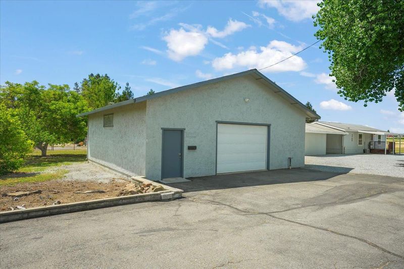 Set on 7.3 usable flat acres, this exceptional property offers versatility and country appeal. A circular asphalt driveway welcomes you with abundant parking and easy access. The refreshed single-story custom home features 4 bedrooms and 2.5 baths, highlighted by rustic redwood beam cathedral ceilings, freshly painted interiors, and all new LED lighting and fixtures. The remodeled primary bath showcases a frameless stall shower and double vanity. The living/dining room combination overlooks the backyard patio, while the separate family room with fireplace and slider opens to the patio, ideal for indoor-outdoor living. A separate studio with kitchen and full bath attached to the rear of the garage provides great use and flexibility options. A permitted 1,000 square foot modular home, built in 2000, includes 2 bedrooms/2 baths, a laundry room, covered parking, and three additional storage spaces-this unit operates independently with its own electric sub-meter and propane tank. Additional improvements include a 35 x 35 utility building with roll-up door, concrete floor, electricity, and shelving. Covered RV parking features septic dump, water, and power hookups. Pipe corrals, covered storage, and expansive rear acreage provide opportunity for future expansion or development. Rare