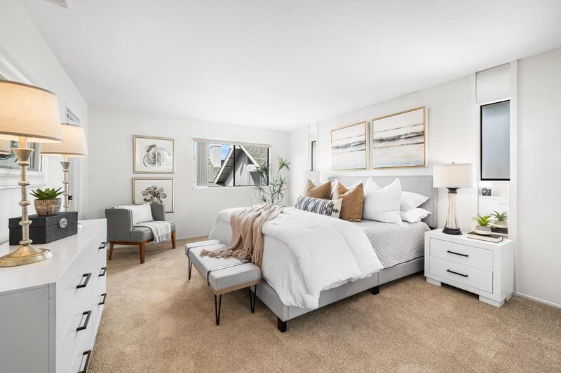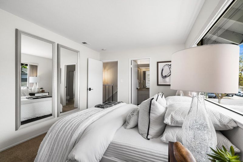Fantastic Blossom Valley Townhouse | Located in the heart of Blossom Valley, this beautifully updated 3-bedroom, 3-bath townhouse offers 1,628 square feet of comfortable, well-designed living space. The bright living room features soaring cathedral ceilings and looks out to a spacious patioperfect for relaxing or entertaining. The main level includes a convenient downstairs bedroom and full bath, ideal for guests or a home office. Upstairs, youll find two primary suites, each with its own walk-in closet and private bath. The kitchen offers recessed lighting and stainless steel appliances, including a dishwasher, refrigerator, and new microwave. Additional upgrades include fresh interior paint, new carpet, updated door hardware, and new electrical switches and plugs. Youll also enjoy central air conditioning, plenty of storage, and a 2-car attached garage. This home is part of a well-maintained HOA with a community pool and is conveniently located near Hwy 85, Light Rail, Oakridge Mall, and plenty of restaurants and shoppingmaking this a fantastic opportunity to enjoy Silicon Valley living.