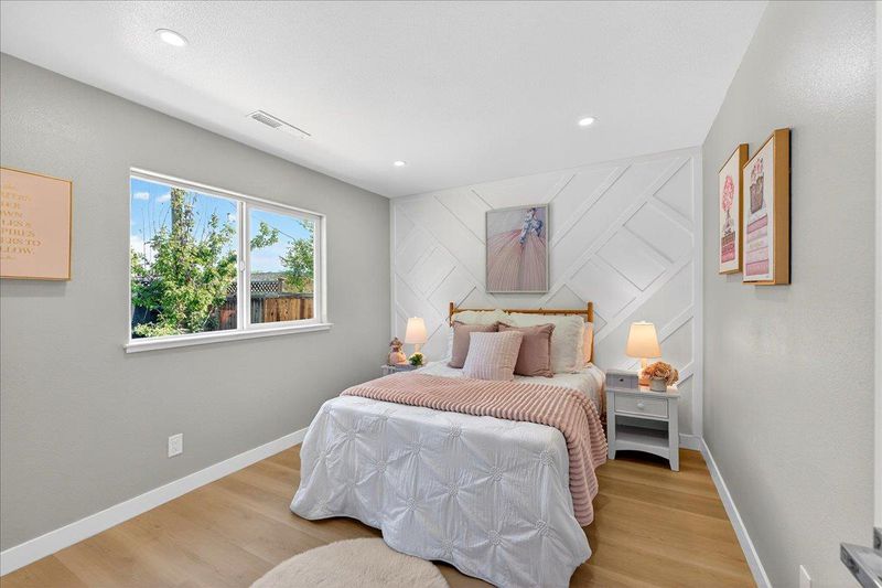 This beautifully reimagined 4BD/2BA residence sits on a generous 6,018 sq ft lot in one of San Joses most desirable neighborhoods. Fully remodeled from top to bottom, every detail has been thoughtfully curated to elevate how you live, gather, and unwind. The home features a seamless open-concept layout with expansive living areas, a spacious backyard, and a 2-car garage. The living room is anchored by a sleek linear electric fireplace with custom built-in shelving, creating a warm yet modern focal point. The kitchen has been tastefully updated with wood cabinetry, stainless steel appliances, and elegant pendant lightingdesigned for both everyday living and entertaining. Bathrooms are fully upgraded with a quartz-surround tub/shower, LED smart mirror, quartz vanity, and smart toilet, bringing a touch of modern convenience and style. Ideally located near parks, shopping, schools, and major commuter routes, this home offers the perfect blend of tranquility and accessibility.