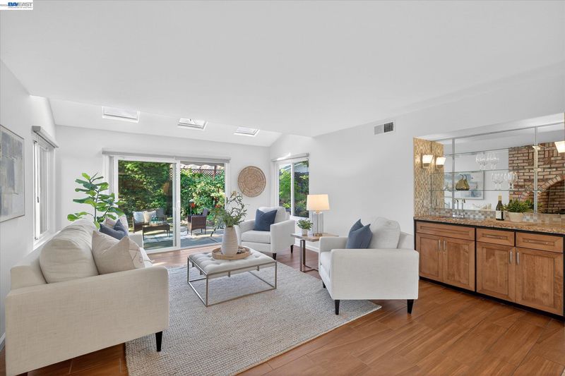Welcome to this rare opportunity in Newark’s highly desirable Lakes neighborhood! This beautifully maintained custom home is one of only 4 uniquely built residences, all in a row. This home is sure to bring years of enjoyment & combines comfort, space, & functionality. Thoughtfully designed with vaulted ceilings in living & dining area, new interior paint. This home blends comfort with understated elegance. The chef's kitchen features SS appliances, granite counters, gas cooktop, breakfast bar & ice maker- ideal for everyday living & entertaining. Wood-like tile flooring in living, family, and downstairs bedroom. A wood stove insert in the family room adds to the warmth! The versatile floor plan includes a downstairs bedroom/office, ideal for guests/word. Additional highlights include new water heater, spacious 3-car garage, and lg side yard access! Enjoy outdoor living at its finest in the gorgeous backyard, with a built-in BBQ kitchen w/counter dining, surrounded by majestic redwood trees & lush landscapi